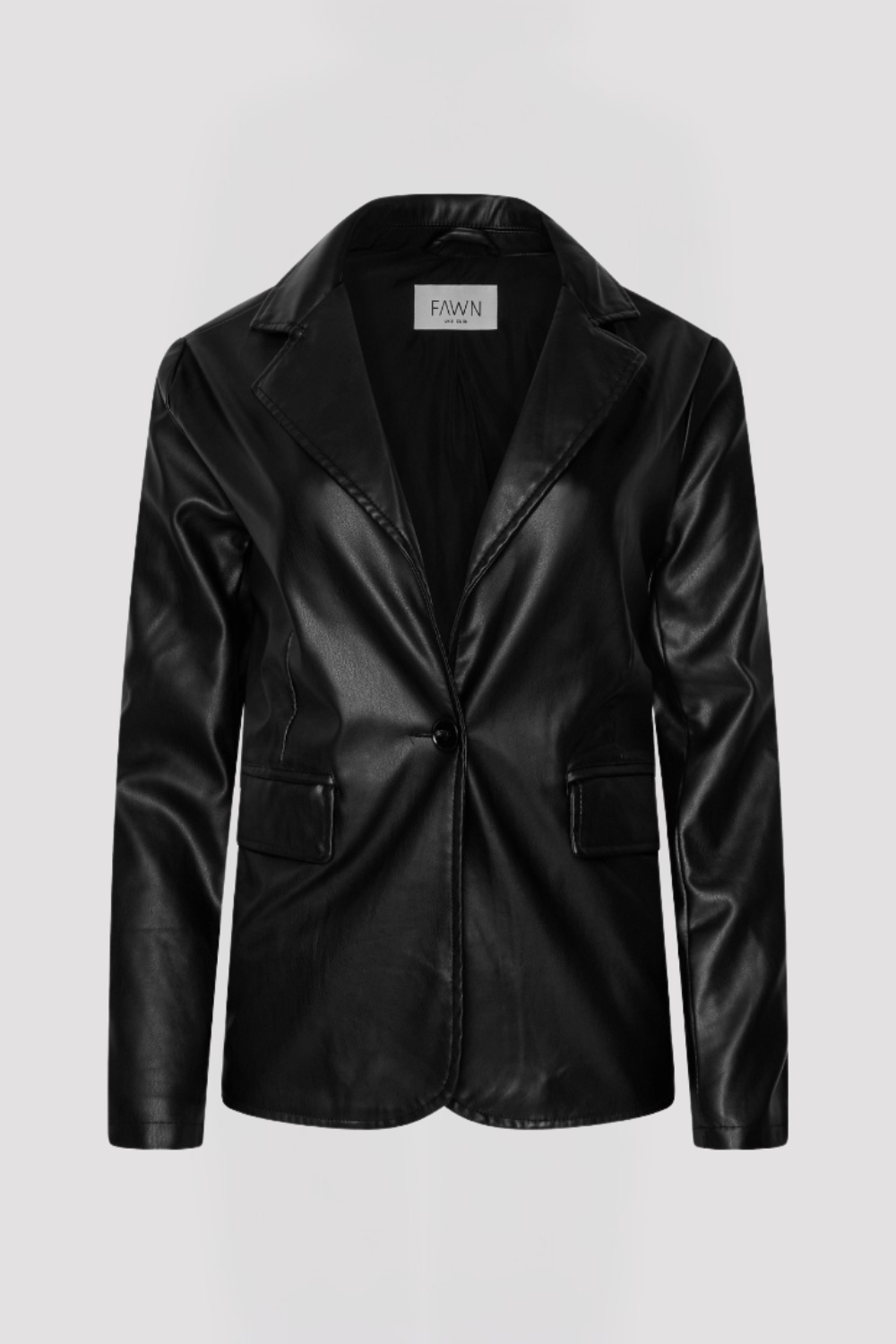 Look sharp and sophisticated in our PU Blazer by fawn. Single breasted design and flap pockets add to its sleek and modern look. Crafted with high-quality PU material, this blazer exudes confidence while keeping you comfortable. Perfect for a professional or formal event.